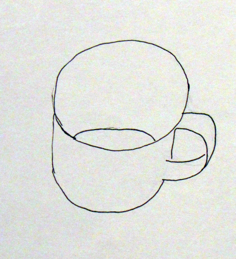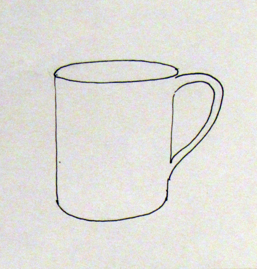 Ellipses are all around us. Take this mug. The wideness of the ellipse shows it’s relationship to my eye level. When the ellipse is very thin, it’s close to eye level. As I lower the mug, the ellipse becomes wider and wider. Also notice that the curve of the bottom edge is similar to the curve of the top edge.