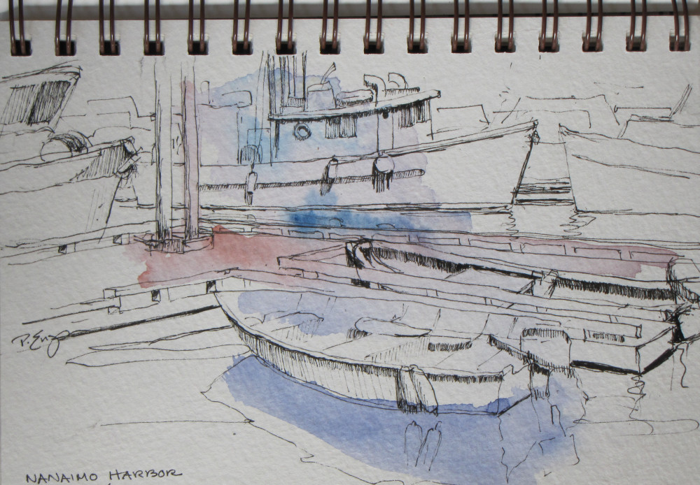 I bought another book to take to Vancouver Island a couple years ago. I was going to be shore crew for a sailboat as it raced around the island. I figured I’d have lots of time at each port while I waited for the boat to arrive. Wrong. There were errands to do, people to see and plans to make. Again, most of my sketches were very quick and rather primitive, but worthwhile to me. I’m so glad I took the time to do them