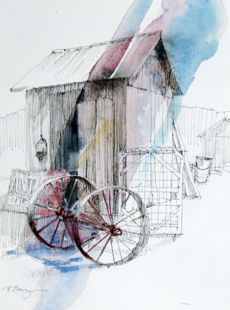 It is somehow comforting to know that, even though small farms are quickly disappearing, there are still ‘house and barn’ scattered across every state. Your drawing captures the feel of it very nicely.