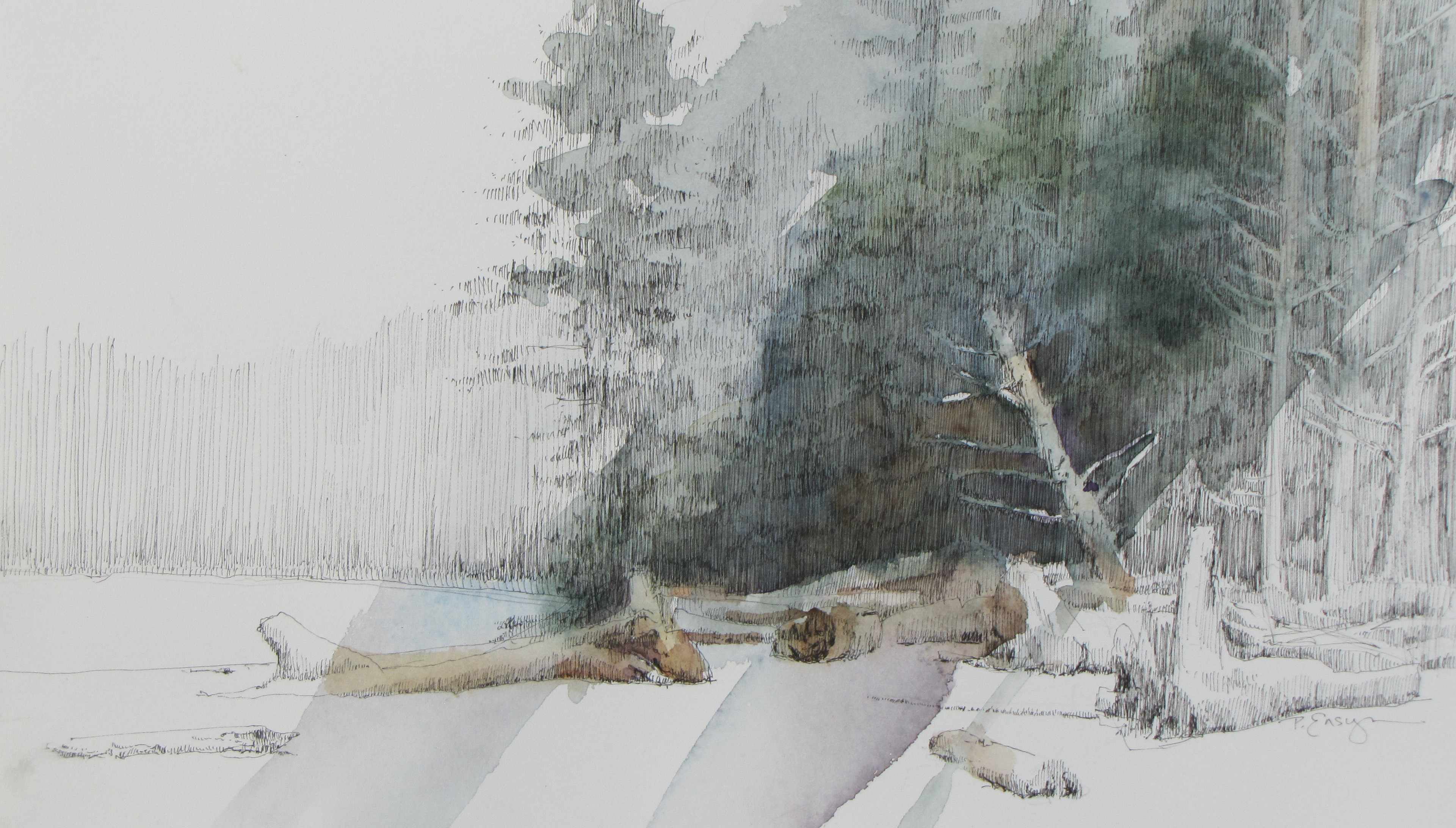 Since every post needs an image, here’s another drawing from the Olympic Peninsula. This was drawn on location at Rialto Beach just as the fog was heading into shore. By the time the drawing was complete, only the foreground driftwood and beach was visible.