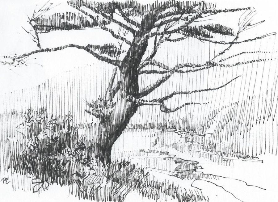 I wanted to paint but it was too wet, so I took pictures. This is pigma micron 005 pen on a 5″ x 8″ pen sketchers drawing pad.